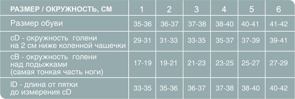Точная градуированная схема распределения компрессионного воздействия: в области лодыжек – 100%, верхней трети голени – 70%, бедренной области – 40%;
