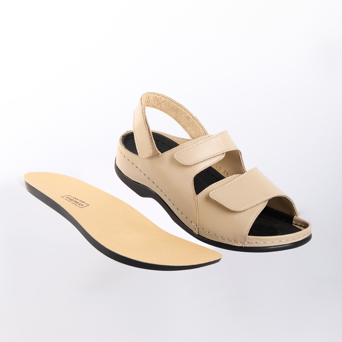 - съемная ортопедическая стелька выверенной формы поддерживает своды и стабилизирует задний отдел стопы. Упругий полимер, из которого изготовлена вкладная стелька, гарантирует долгий срок службы без потери терапевтических свойств. Покрытие стельки – запатентованный европейский материал ON-Steam, на основе микрофибры. Воздухопроницаемость материала, способность впитывать излишнюю влагу, возможность стирки при 30 градусах – это дает дополнительные удобства и облегчает уход. Стельки надежно крепятся в открытой обуви посредством липучек. При желании индивидуализировать сабо Вы можете заказать индивидуальные стельки, перейдя в специальный раздел на сайте.