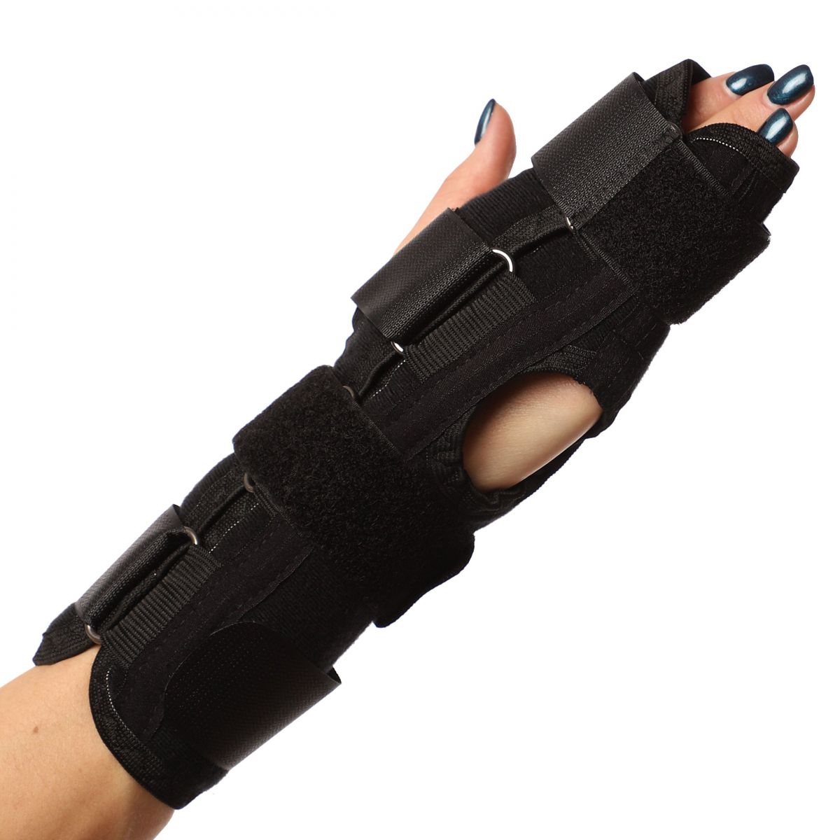 - Система лент с застежками Velcro плотно фиксирует запястье в функционально выгодном положении