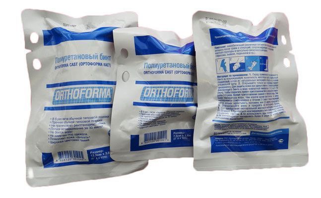 Бинт полиуретановый белый - используется для иммобилизации различных сегментов опорно-двигательного аппарата после травм и операций, сопровождающихся повреждением костной структуры и капсульно-связочного аппарата. Полиуретановый бинт прекрасно заменяет традиционный гипс, а по своим свойствам превосходит его. Он легкий, прочный, дышащий, гипоаллергенный, удобный в процессе эксплуатации, не препятствует рентгенодиагностике, не боится воды.