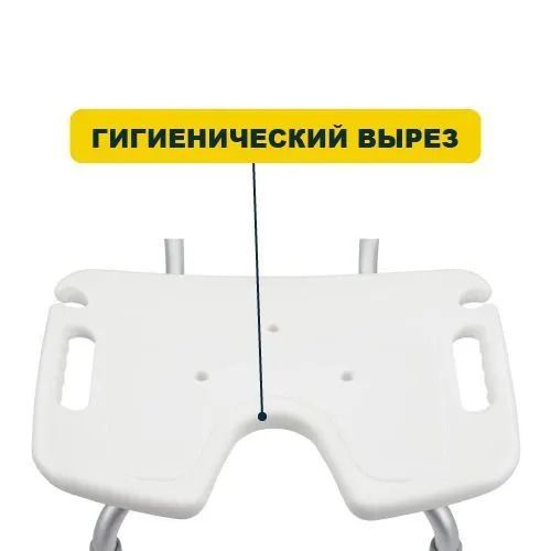 Сиденье табуретки, двумя вырезами для захвата кистями рук и дренажными отверстиями, изготовлено из стойкого к специальным дезинфицирующим средствам полиэтилена высокой плотности.