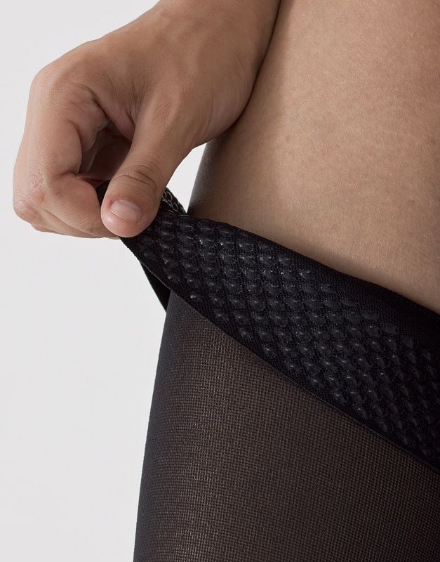 В верхней части чулок имеется резинка с силиконовым покрытием, что обеспечивает лучшую фиксацию и прилегание.