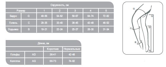 Эластичный материал, из которого выполнены чулки, обеспечивает компрессию (внешнее давление) на подлежащие ткани. Компрессия распределяется по специальной градиентной схеме: в области лодыжек её значение составляет 100%, в зоне верхней части голени – 70%, в области бедра – 40%.