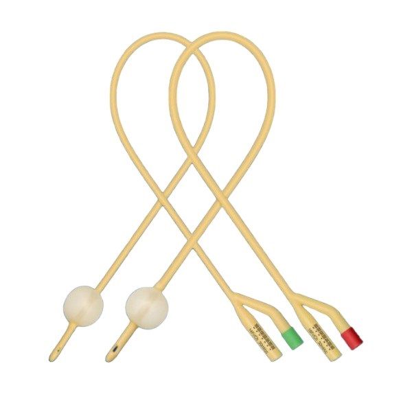 Катетер двухходовой латексный с силиконизированным покрытием размер 20, объем баллона 30 мл.