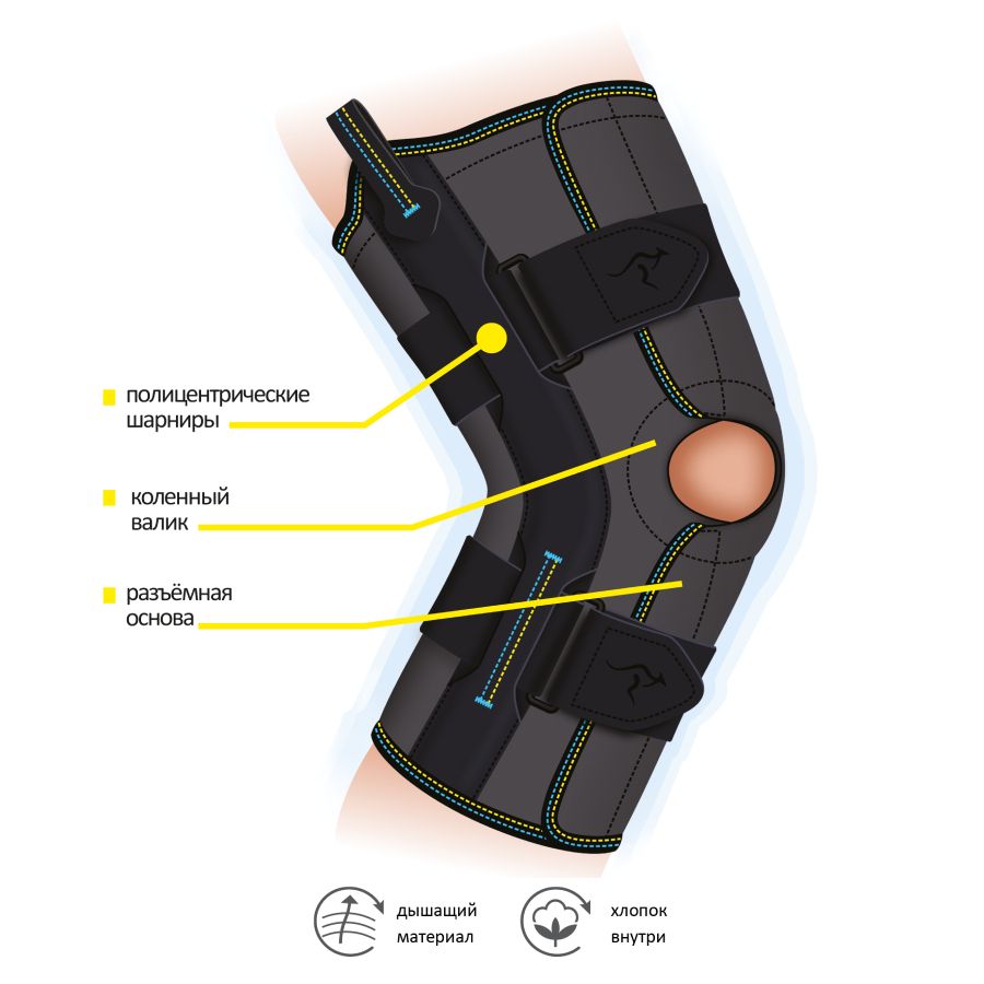 - предотвращает патологические боковые движения в коленном суставе; • восстанавливает двигательную активность сустава;