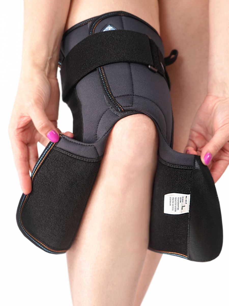 - подходит для людей при ограниченной подвижности конечности или при наличии повязок, т.к. разъемная основа с увеличенными застежками "велкро" позволяет регулировать размер изделия по ноге;