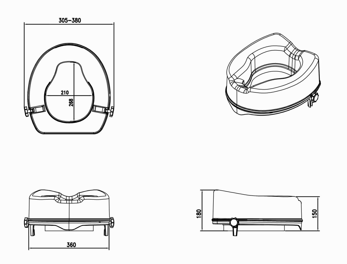 Насадка позволяет с комфортом пользоваться унитазом людям с инвалидностью, пожилым людям, а также в период реабилитации после поражения опорно-двигательного аппарата. Насадка увеличивает высоту унитаза на 12,5 см. Легко крепится к унитазу: нужно лишь зафиксировать насадку на унитазе и закрутить крепления до упора. Насадка оборудована крышкой. Конструкция выполнена из пластика, который не впитывает запахи и легко моется.