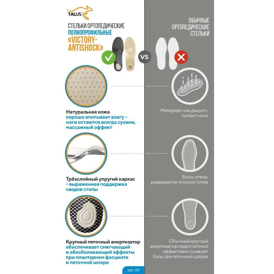 - Стельки «Victory Antishock» прекрасно подойдут людям, которые ведут активный образ жизни и заботятся о здоровье своих ног.