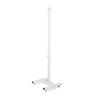 На основании стойки расположена пара колес, благодаря которым удобнее перемещать стойку. Рядом с колесами расположена пара опорных ножек, которые необходимы для устойчивости конструкции.