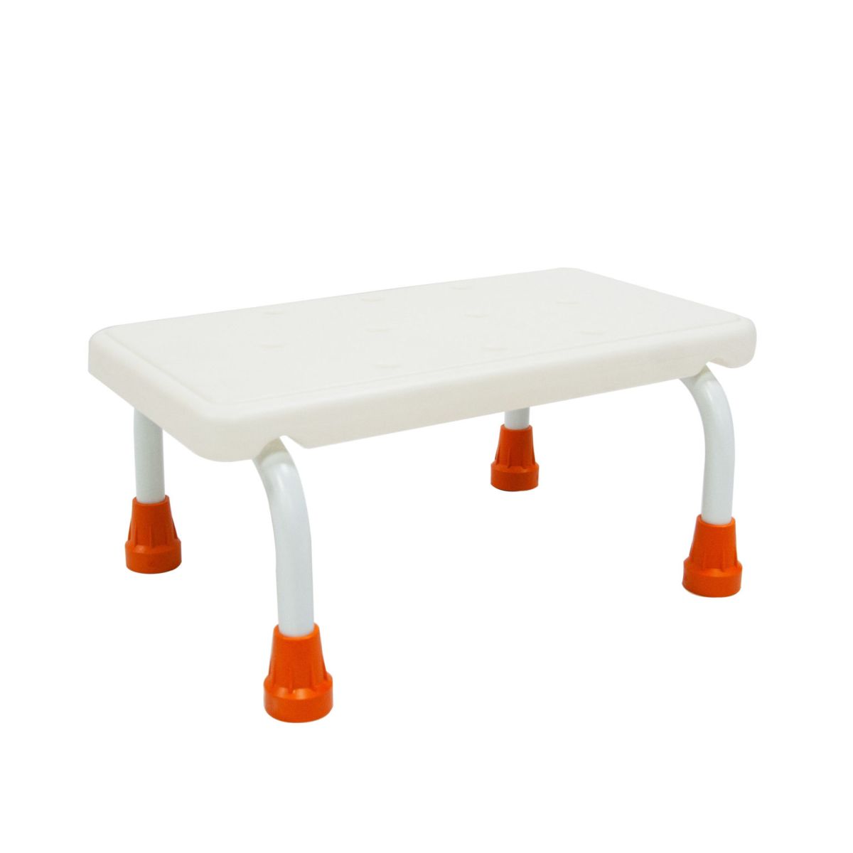 Ступенька предназначена для установки в ванные комнаты или душевые. Ступенька выполнена из высокопрочного рифленого пластика, устойчивого к воздействию воды. Конструкция рамы выполнена из стали с полимерным покрытием и не подвергается коррозии. Резиновые наконечники на всех ножках препятствуют скольжению и не оставляют следов на поверхности.