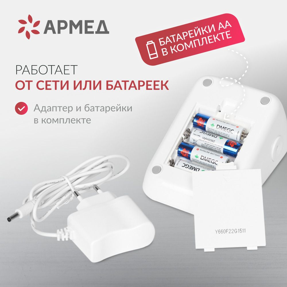 - Питание: 4 батареи "АА", Сетевой адаптер 6В, 3,6 Вт