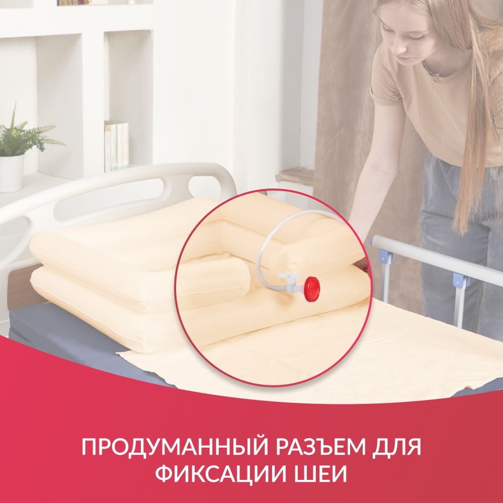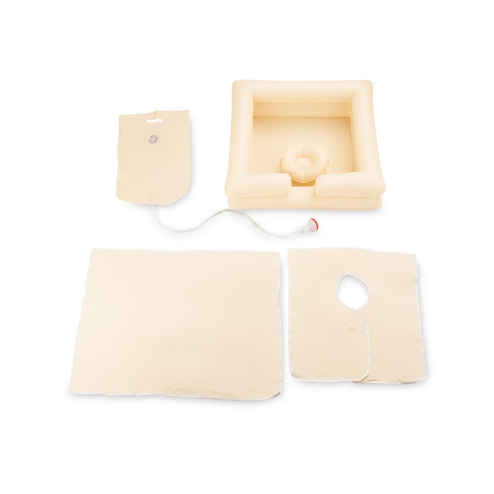 Практичный и функциональный набор для мытья головы станет незаменимым помощником при уходе за лежачими пациентами. Включает в себя быстро надувную вместительную ванну с продуманным разъемом для фиксации шеи пациента, а также защитный фартук, подстилку и емкость для воды с удобной лейкой.